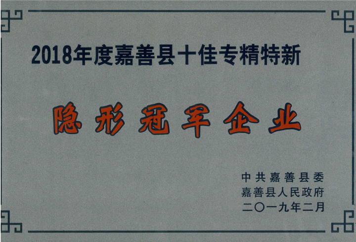 热烈祝贺公司荣获2018年度“十佳专精特新隐形冠军企业”