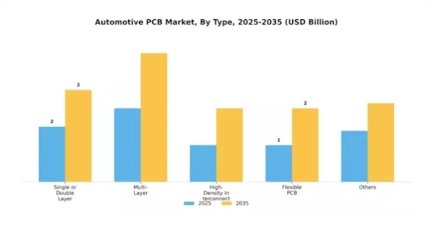 受电动汽车、自动驾驶技术升级以及汽车网联化程度加深的驱动,2025-2035年全球汽车PCB市场将保持5.28%的复合年增长率。市场新机遇主要体现在三个方面:研发适配电动汽车的高密度互连板、推动智能传感器与汽车PCB的融合、为新兴市场打造定制化PCB解决方案。预计到2035年,全球汽车PCB市场将实现稳健增长与技术创新的双重突破。